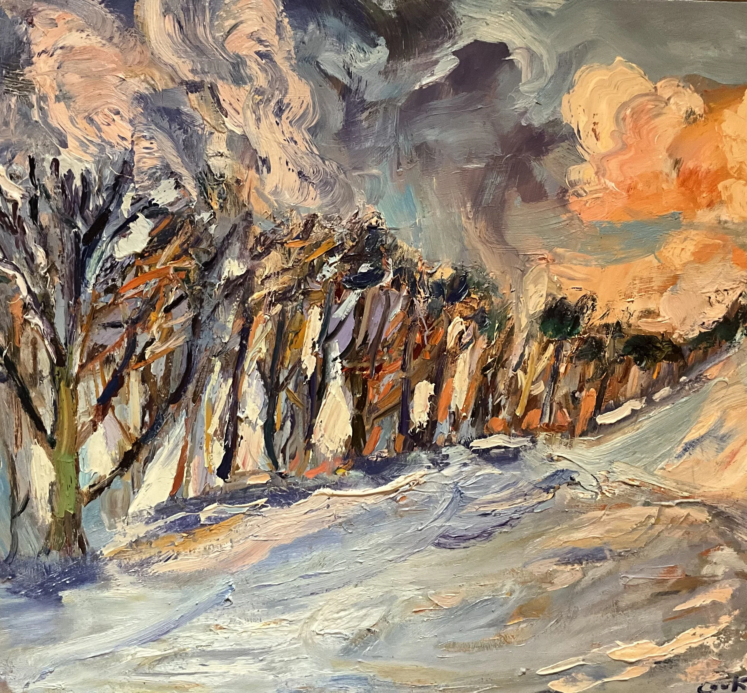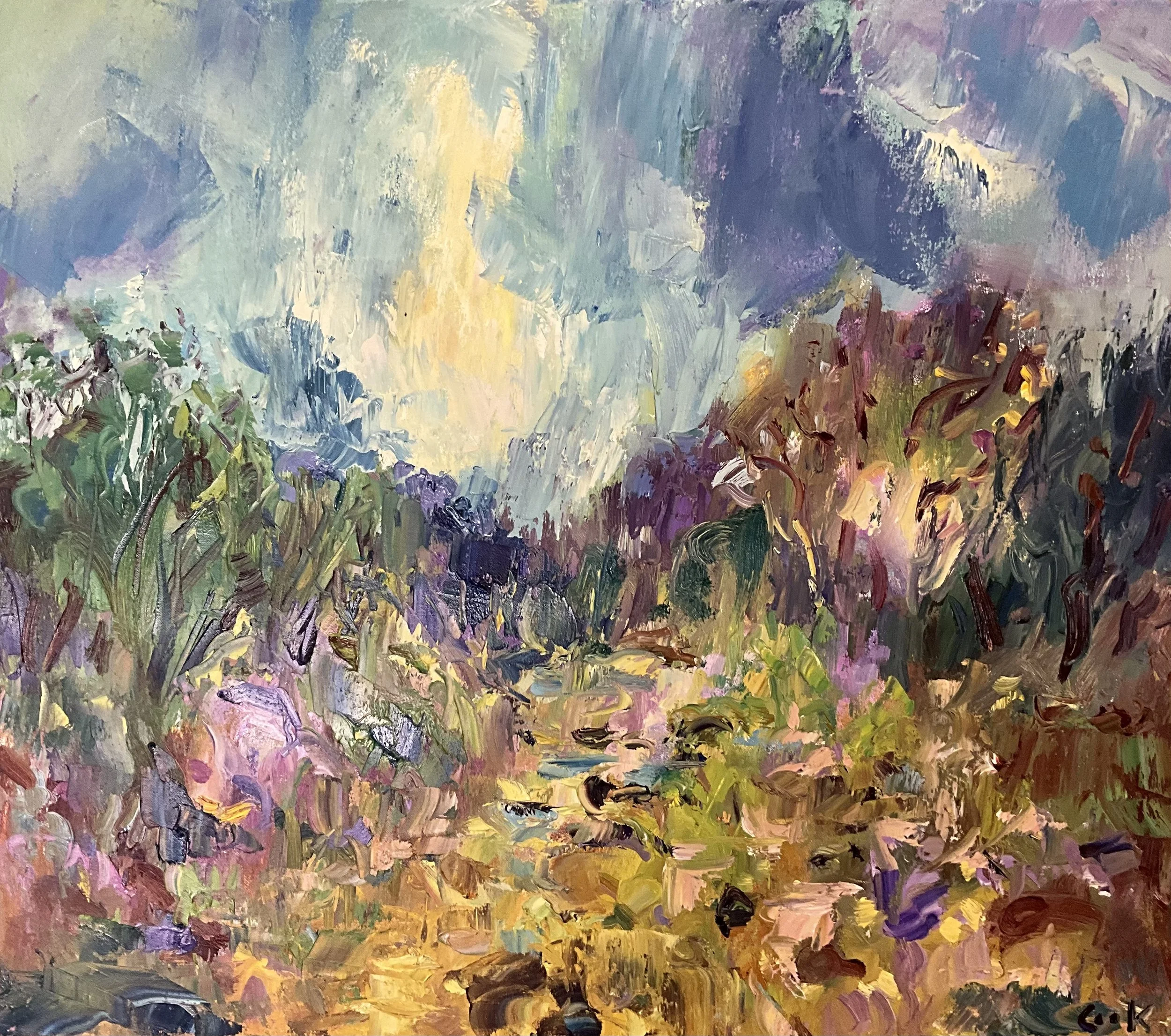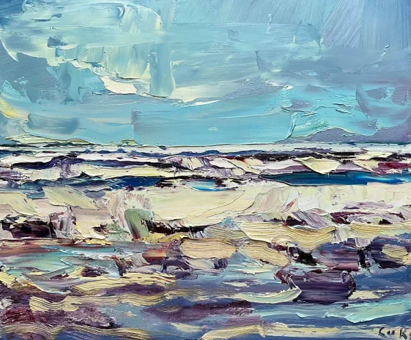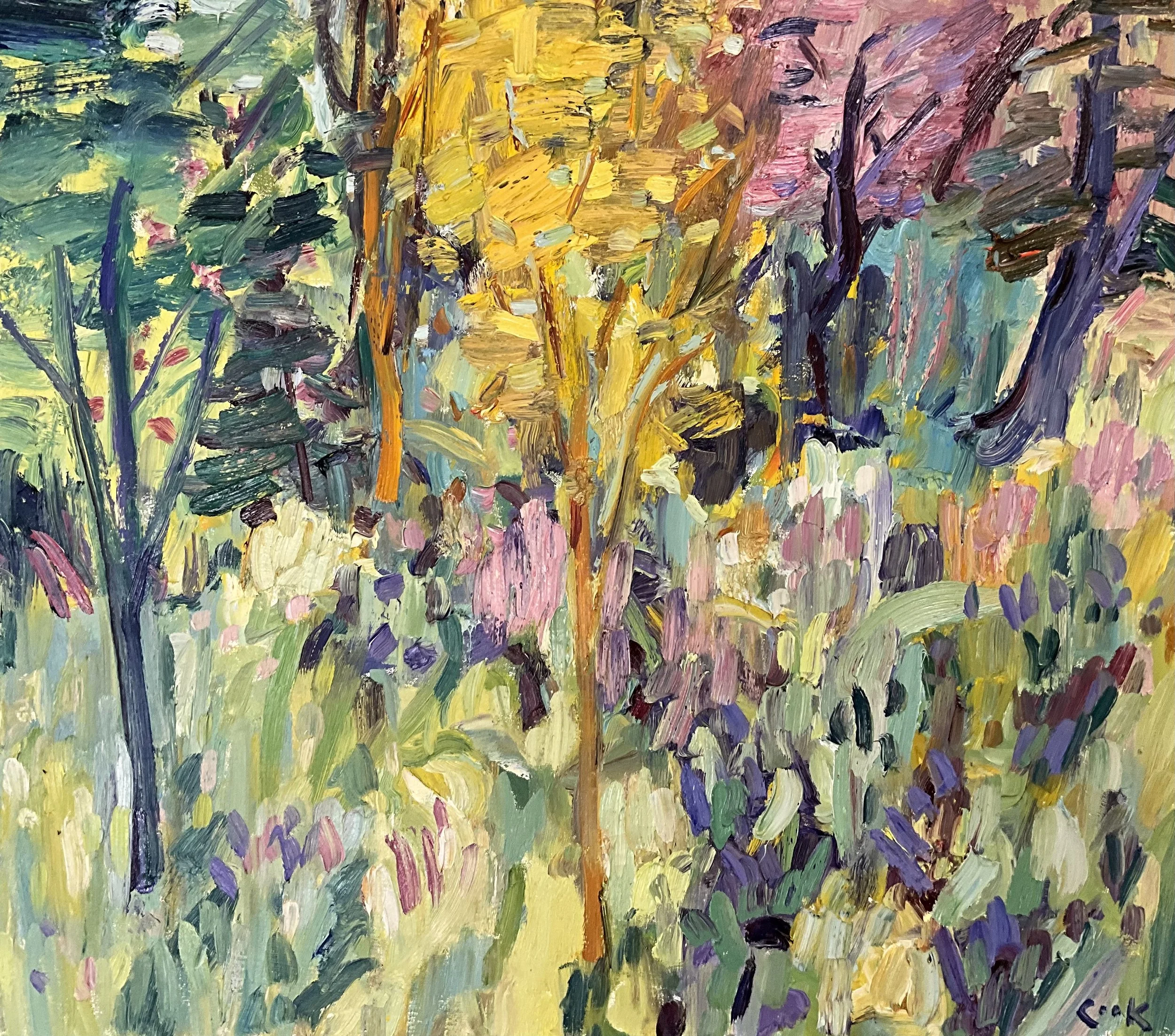 Cook’s work is characterised by bold colours, thick impasto, dramatic brushwork and emotional intensity. His works convey his inner landscape rather than accurate representation of place. He is a unique and compelling voice in contemporary Scottish art.