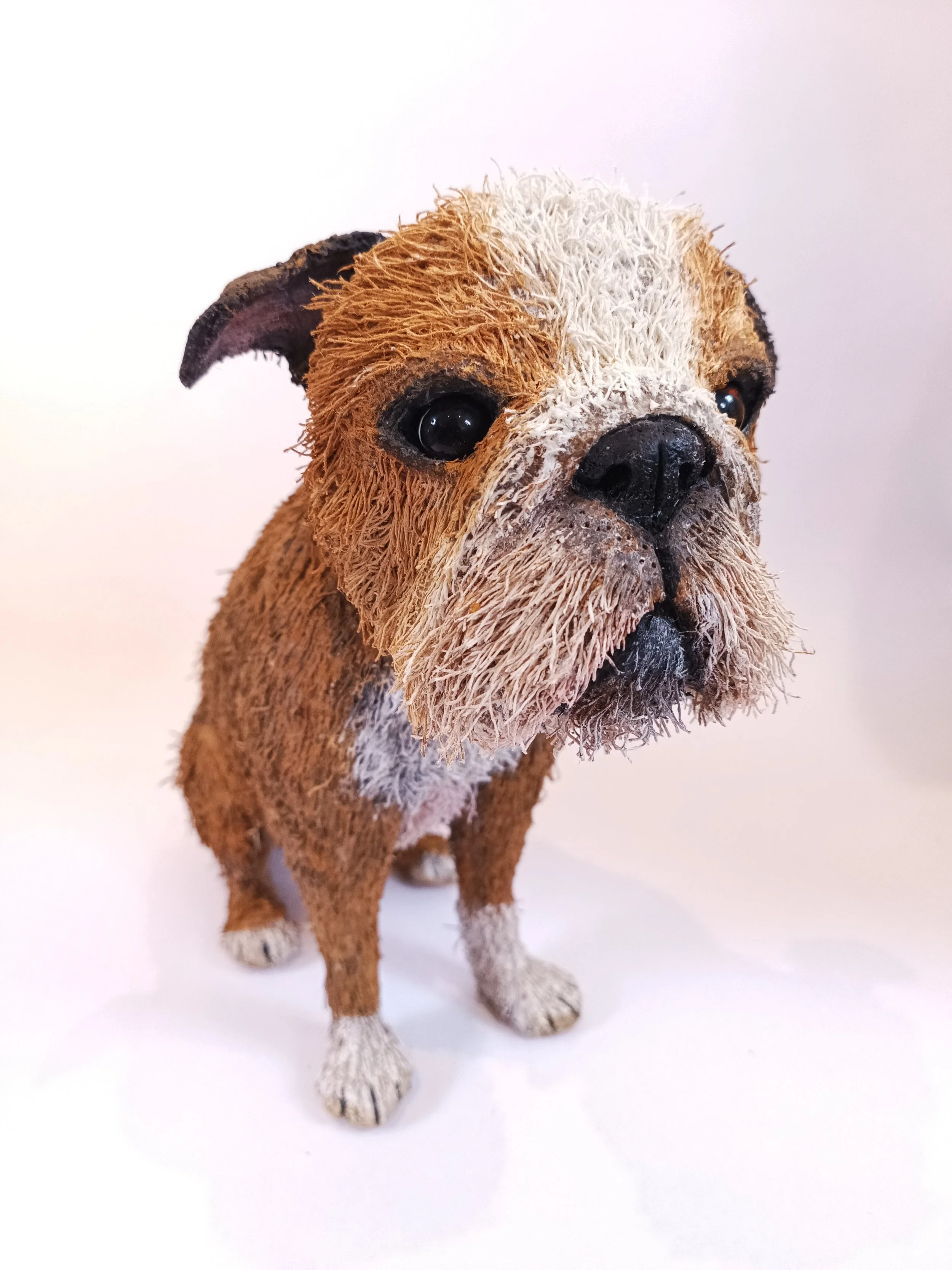 Gemma's sculptures begin as a drawing. She then makes an armature using wire. This is then built up with clay and resin until the shape is formed. The hair is created using many materials including fibres, wire, resin and clay. Creating each dog is a very time intensive process.