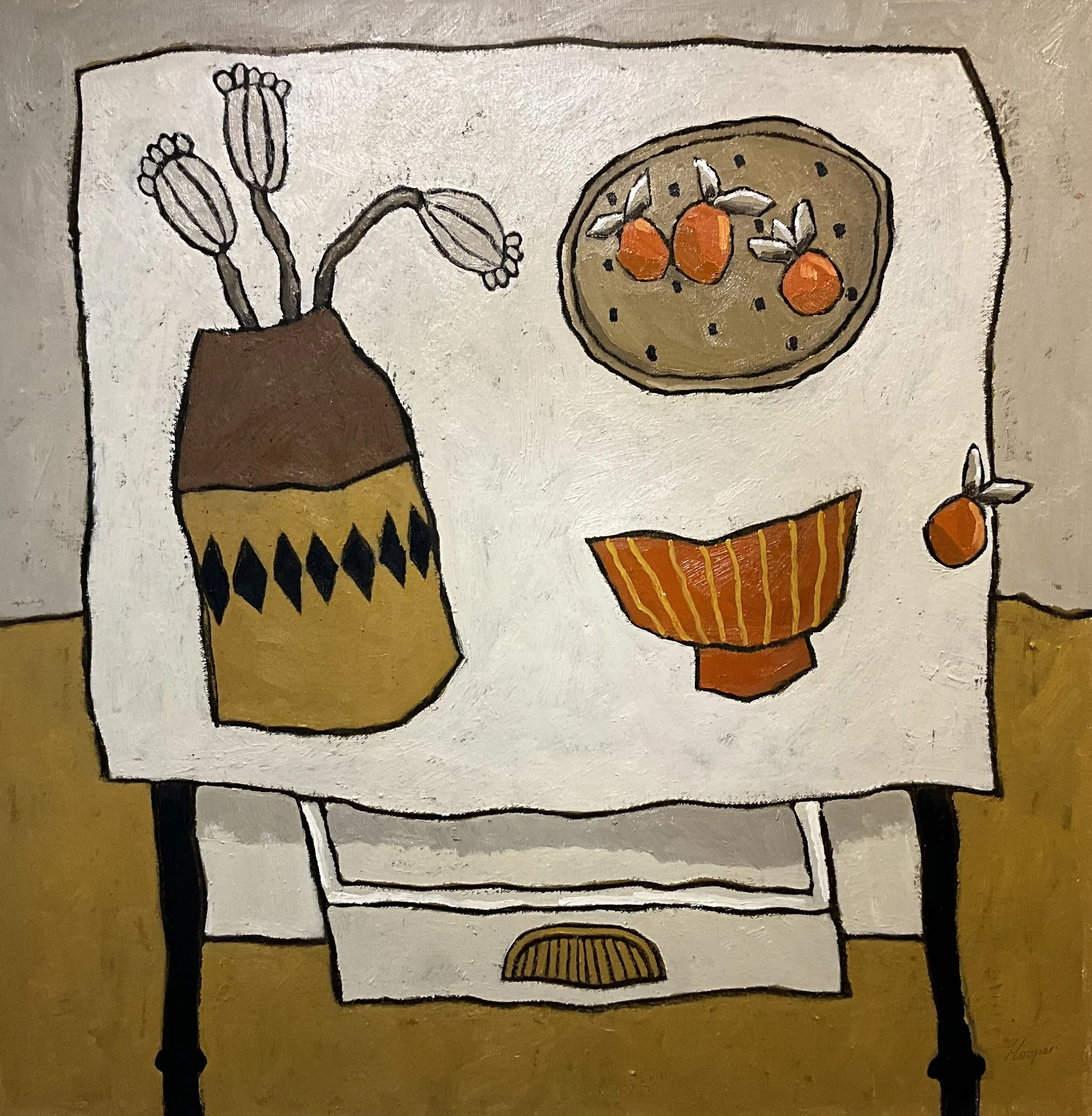 Jane lives in Thame, a market town in east Oxfordshire. The town often serves as inspiration for her work and it influences much of her subject matter - for example, the wonderful fruit and vegetable market.Jane also likes to include everyday domestic objects in her compositions. She finds it satisfying to depict these often overlooked items.