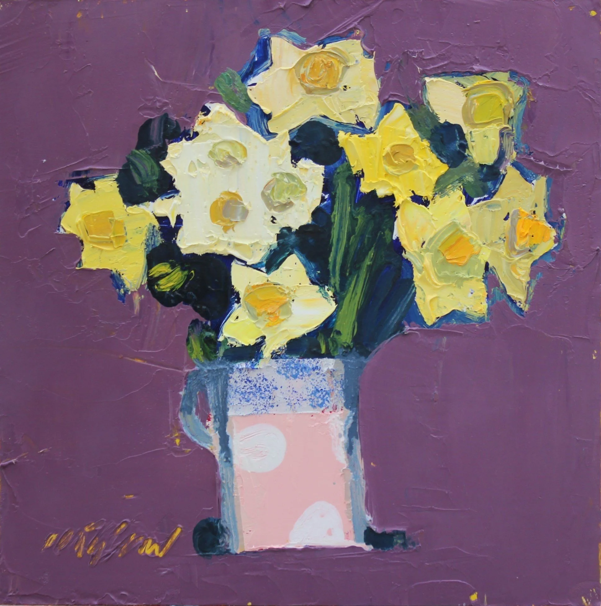 Mhairi has travelled extensively throughout her life and has exhibited at galleries throughout the UK and in Europe, Australia, Canada and the USA. She has exhibited at the Royal Academy in London and at the Royal Scottish Academy. Mhairi is known for her vibrant use of colour, her layering of paint and her impasto technique. For each painting, Mhairi uses a limited palette and builds the colour through skilled mixing and layering. She is a real perfectionist who makes deliberate, thoughtful choices about composition and colour. She never repaints canvases, preferring instead to start again completely if a work does not reach her high standards. This, of course, means that all McGregor works on show are stunning!