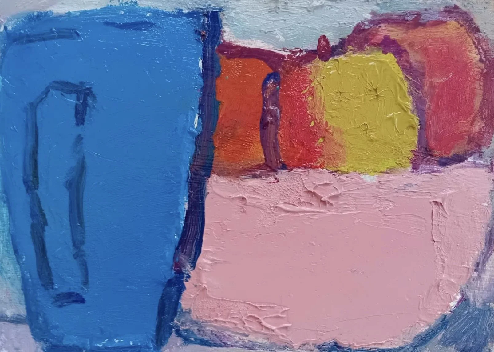 Michael won the New English Art Club drawing scholarship in 2014 and the Le Clerc Fowle Medal for a group of outstanding paintings at the Royal Institute of Oil Painters annual exhibition in 2015. He was elected to the NEAC in 2022.Michael paints things around him at home - oranges, apples, a blue mug, a milk bottle, a packet of coffee. The arrangements of shapes and colours make him want to paint them.